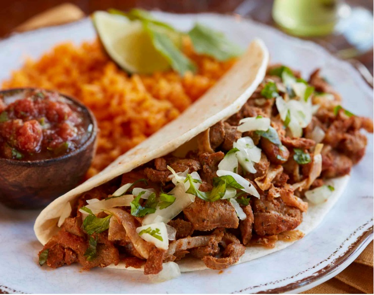 在微波炉中加热玉米饼 30 秒。 将猪里脊、鳄梨、西红柿、生菜和菠菜放入卷饼中(如果不能全部放入,请不要担心,其余部分分开享用)。 将蛋黄酱挤在上面,撒上葵花籽。