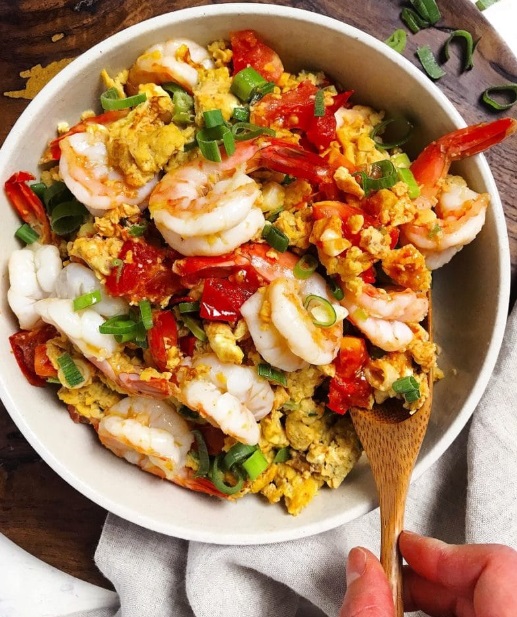 在锅中加热番茄酱3分钟,加入大虾和黄瓜再煮3分钟。