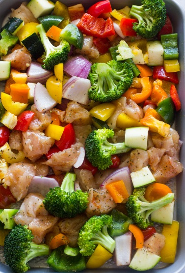 Heat another pan to cook the chicken breasts and serve with boiled vegetables.